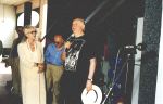 Foto di Dario Fo mentre ridipinge alcune litografie dal titolo "Ritratto di Franca".